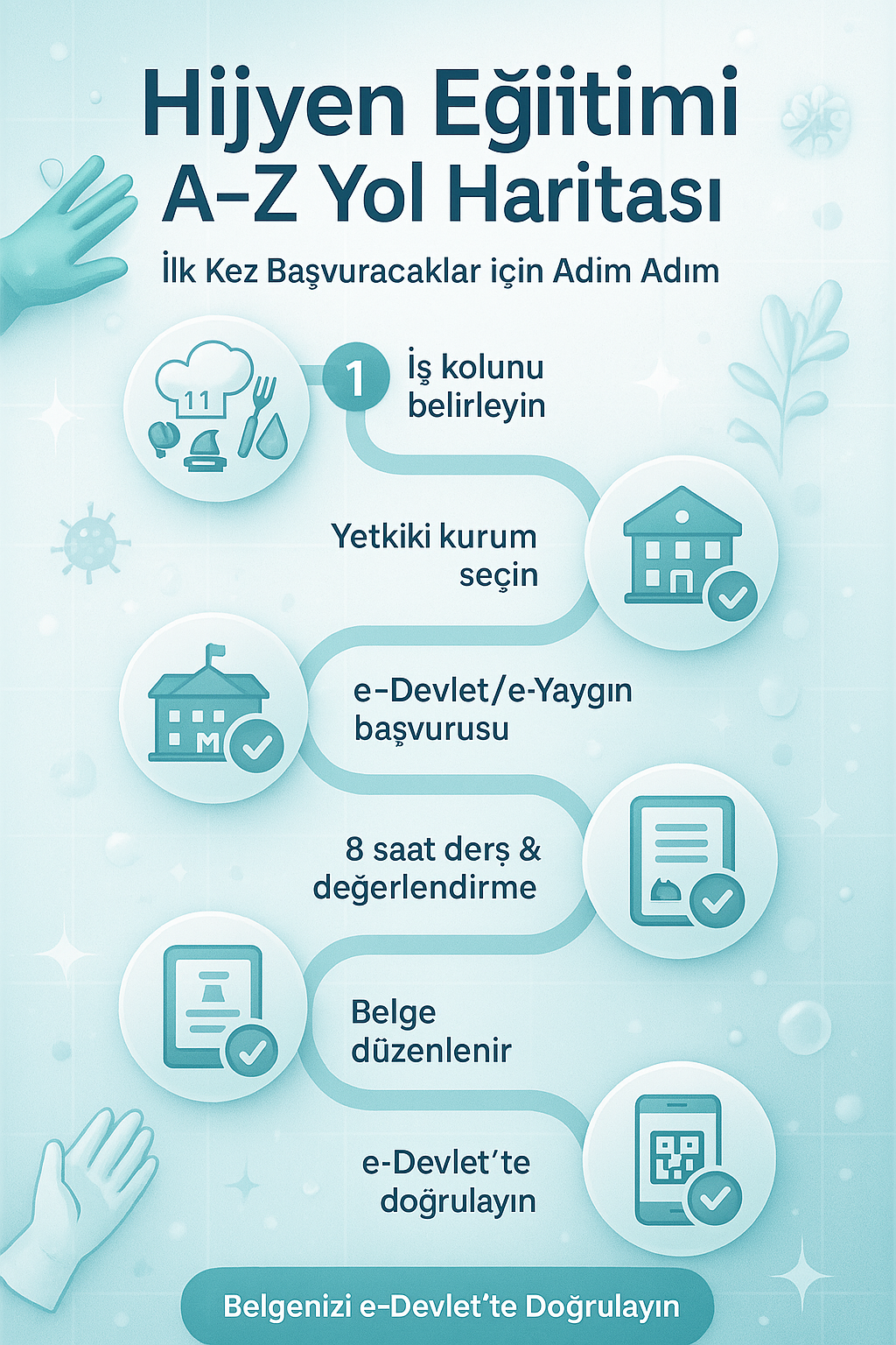 İlk kez başvuracaklar için özet: (1) Doğru iş kolunu belirleyin, (2) HBÖGM’ye bağlı bir kurum seçin, (3) e-Yaygın üzerinden başvurun, (4) eğitimi tamamlayıp MEB kurs bitirme belgesi alın, (5) belgeyi e-Devlet’te doğrulatın ve (6) iş kolu değişirse yeniden eğitim planlayın. Böylece hem yasal uyum hem de operasyonel hijyen standartlarınızı garanti altına alırsınız.
